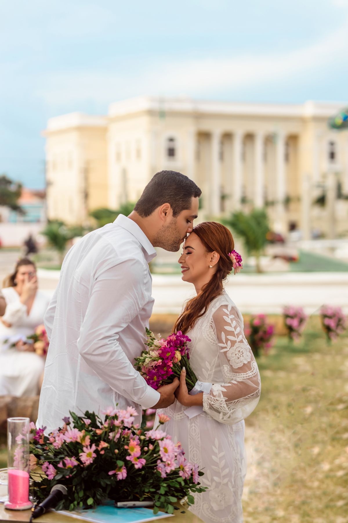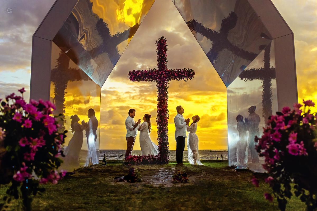 Sobre esse dia incrível, onde tudo indicava que iria chover a todo momento, mais com o pensamento positivo de toda equipe, olha que por do sol mágico Deus nos presenteou. Cada detalhe foi Lindo e muito emocionante, as amigas que resolveram casar juntas, no mesmo dia, a @dra.thaisperes.estetica(noivas) fez a Make da @dra.hellenfisio (noiva), achei lindo isso,Fez com que tudo se tornasse mais leve e único . Que papai do céu abençoe muito vocês .